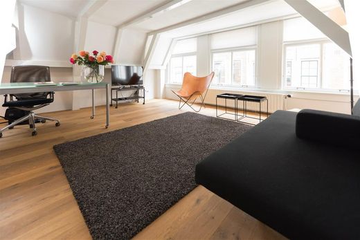 Beautifully and furnished apartment of appr 135 m2 in a monumental building, situated in a quiet street, around the corner of the Nieuwmarkt in the historical centre of Amsterdam. Four airconditioned bedrooms, 2 bathrooms, kitchen, living and a spacious landing on the top floor.
